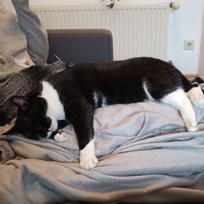 Der kleine Morris blieb als letzter aus Maras Wurf übrig. Umso schöner, dass er ein neues Zuhause gefunden hat, bei dem ein gleichaltriger kleiner Kater aus einem anderen Tierheim zusammen mit ihm diese verrückte Welt erkunden kann. Von all diesen Abenteuern muss man sich dann natürlich auch ausgiebig erholen.