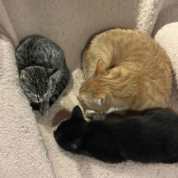 Unsere beiden Zuckerschnuten Xia und Wusel wurden einzeln gefunden und haben sich sofort in unsere Herzen geschlichen. Als die Familie dann später noch unser Sorgenkaterchen Emil zu sich nach Hause geholt hat, gab es für die drei ein absolutes Happy End.