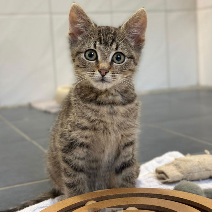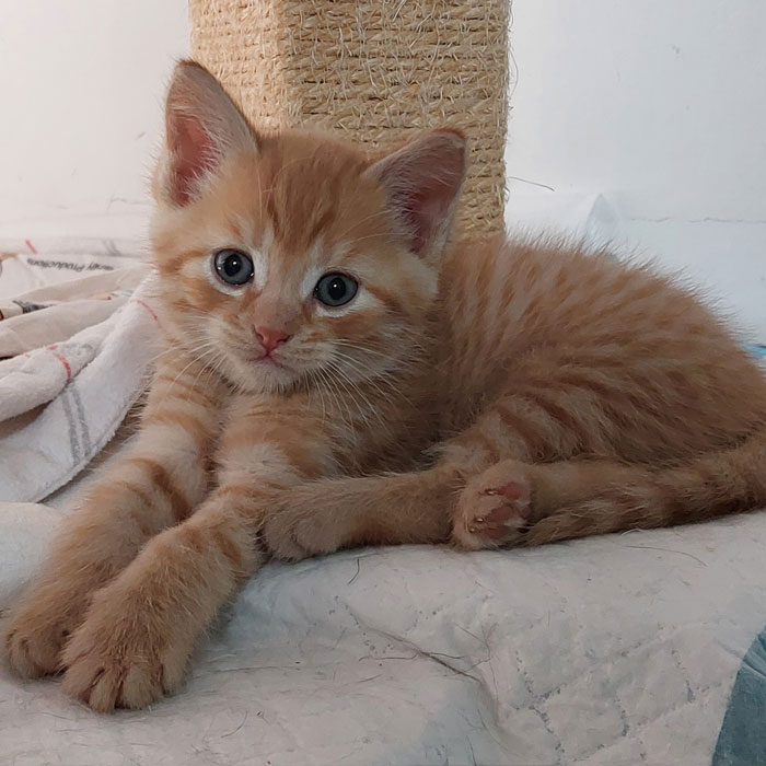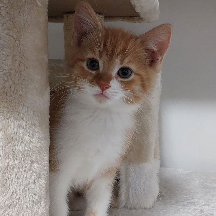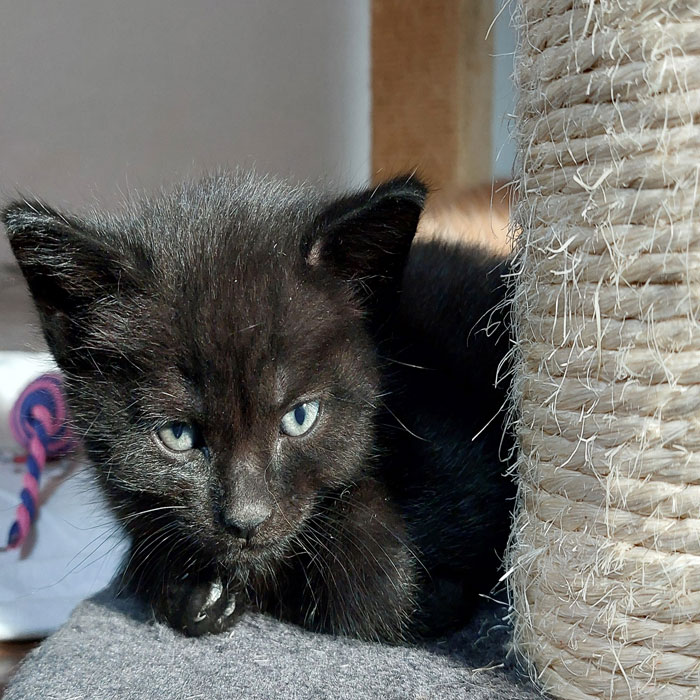 Amadeo und seine drei Geschwister kamen zusammen mit ihrer Mama zu uns, um in Sicherheit aufzuwachsen. Er ist ein kleiner Wirbelwind und macht vor nichts Halt. Amadeo sucht ein Zuhause mit einem seiner Geschwisterchen oder einem gleichaltrigen Kitten.