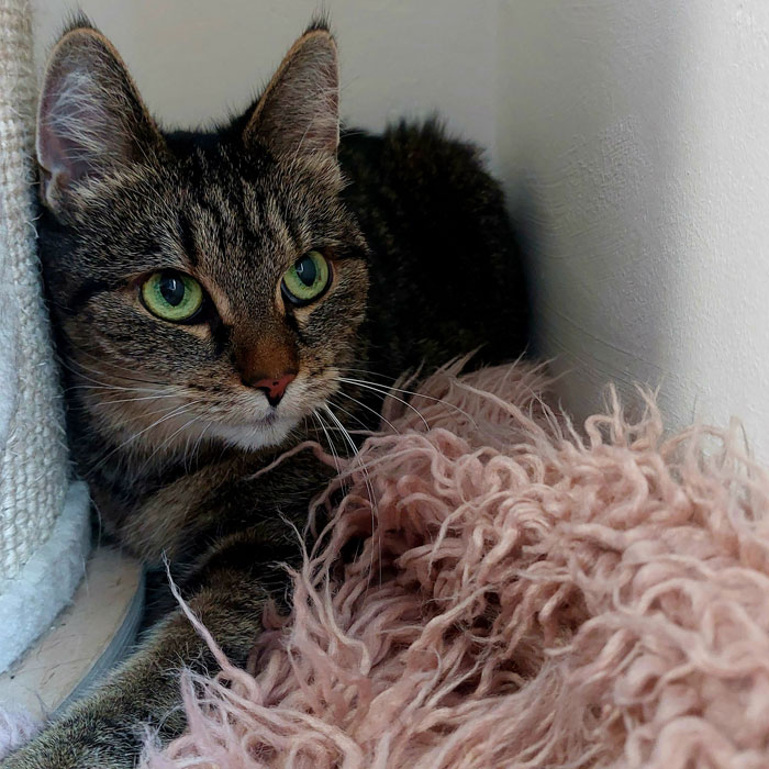 Finja kam als Fundkatze zu uns. Sie ist eine sehr ruhige Katzendame, die sich ein ruhiges neues Zuhause, in dem sie erstmal in Ruhe ankommen darf, wünscht. Finja würde sich auch über einen gesicherten Freigang freuen, in dem sie sich ein wenig Frischluft um die Nase wehen lassen kann.